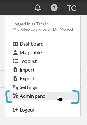 This guide is intended for Admins of Teams. An Admin is a User in a Team with Admin rights, and access to the Admin Panel (accessed via the top right menu). A Team can have several Admins and must have at least one.