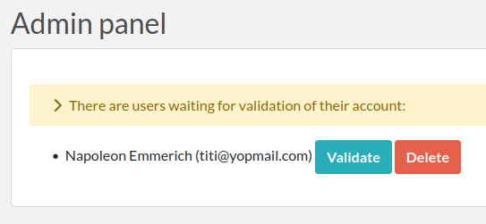 Unless this setting has been modified by the Sysadmin, or provisioning is done automatically, new accounts will need to be validated by a Team Admin before new Users can connect. The Admin is responsible for validating new User accounts. To validate new Users, head to the Admin panel where you will see a list of Users waiting for validation.