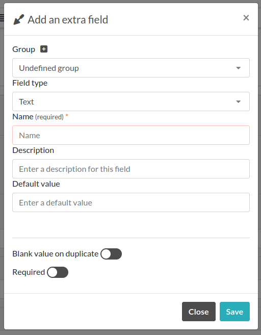 If you want your new inputs to appear in groups, you can click the + button next to "Group" to add a new group. Or select an existing group from the dropdown menu.