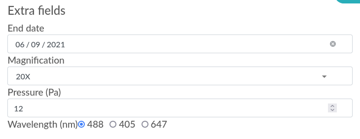 Let's try it on an Experiment. Create a new experiment, and scroll down (in edit mode) to the "Extra fields" part.