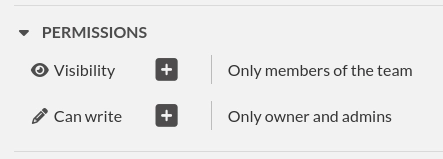 Click the Plus icon to view, add, or remove permissions. A modal window will open: