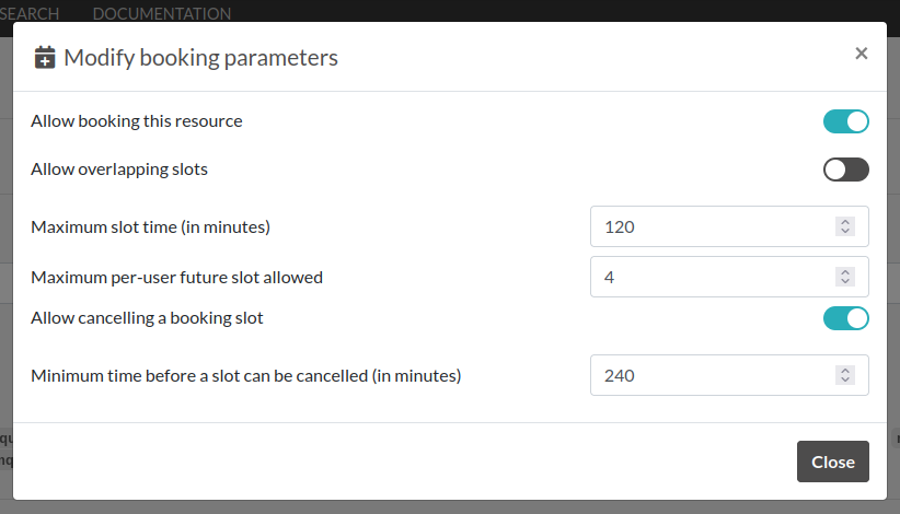 | Allow cancelling a booking slot | Control whether Users are allowed to cancel a booking |
